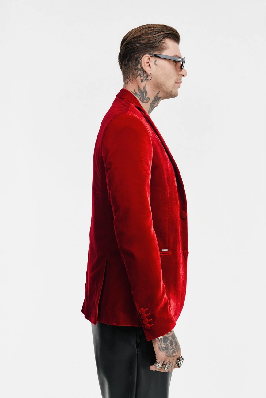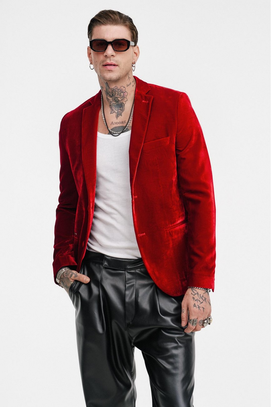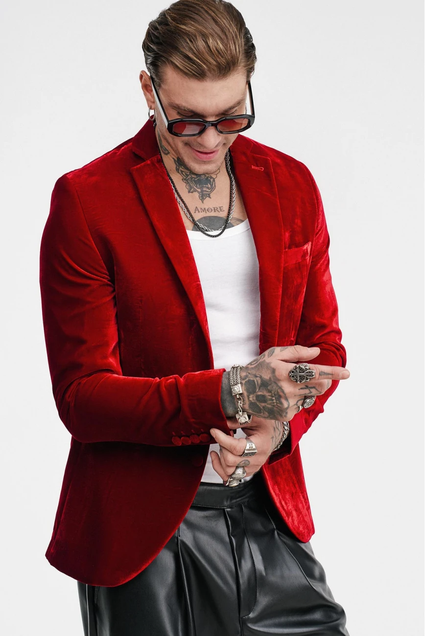 Βελούδινο Δίκουμπο Σακάκι ModernFit Με 2 Εξωτερικές Τσέπες & 1 Εσωτερική, Must-In Για Κάθε Νυχτερινή Έξοδο Του Χειμώνα Σε Τρείς Αποχρώσεις, Μπλε Μεταλλικό, Κόκκινο Φωτιάς Και Μαύρο!