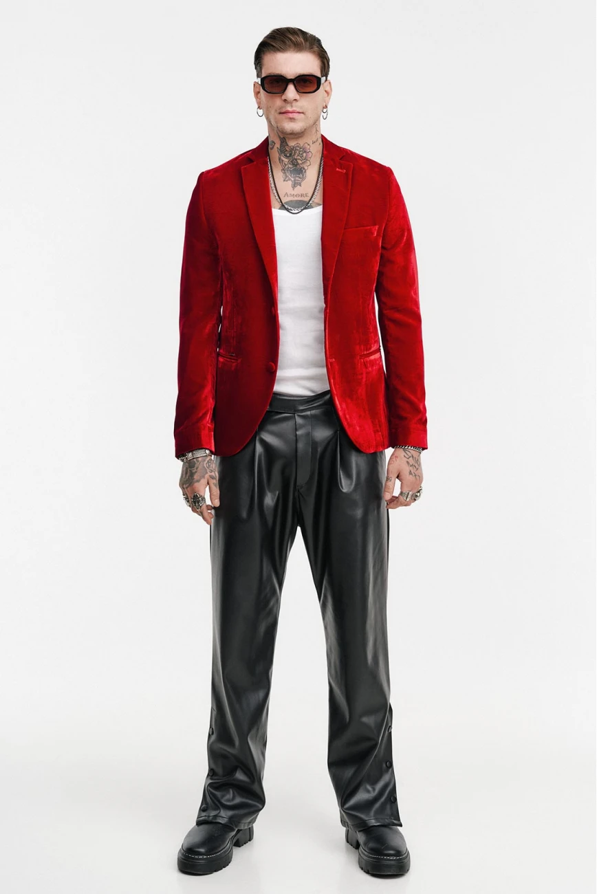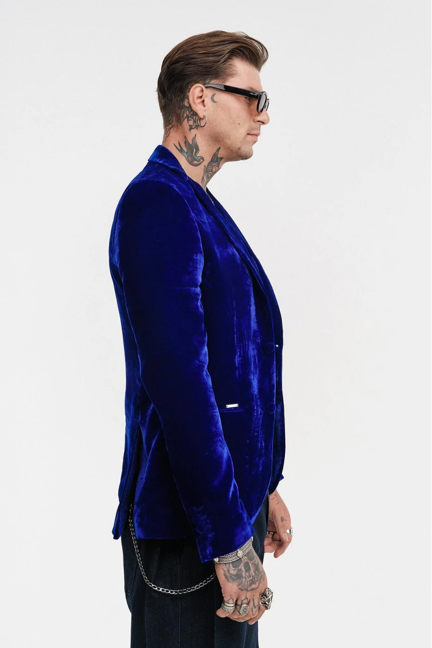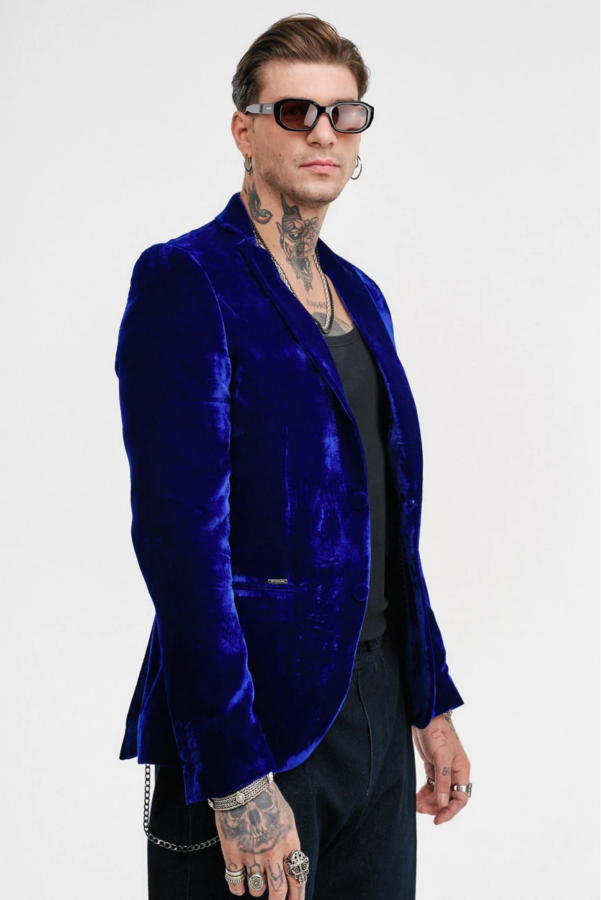 Βελούδινο Δίκουμπο Σακάκι ModernFit Με 2 Εξωτερικές Τσέπες & 1 Εσωτερική, Must-In Για Κάθε Νυχτερινή Έξοδο Του Χειμώνα Σε Τρείς Αποχρώσεις, Μπλε Μεταλλικό, Κόκκινο Φωτιάς Και Μαύρο!